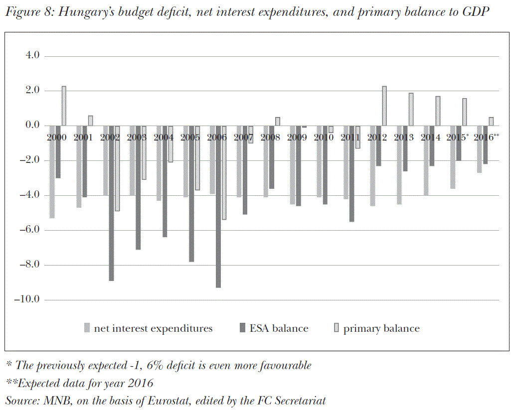 - In 2016, the Council gave a positive evaluation of the 2017 central budget bill thanks to the step taken towards a balanced budget (the separation and deficit of the operational and accumulation budgets was shown only in case of the latter). At the same time the FC called the attention to the fact that the requirement regarding the so-called structural deficit had not been met.