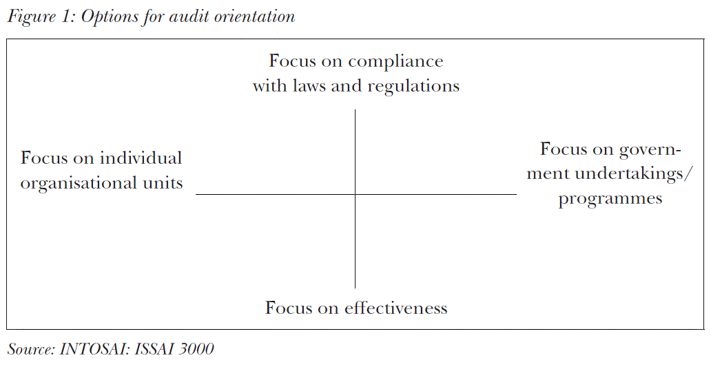 The form of public management also affects the priorities of SAI audits. As stated in ISSAI 3000, “in countries where public management is mainly concerned with means and less involved with ends, audits also tend to focus on whether rules have been observed and enforced rather than whether the rules serve or are seen to serve their intended purpose”.