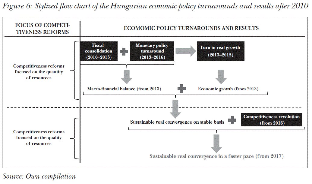 In the last six years there have been numerous structural reform measures to stabilise again the macro-financial balance of the Hungarian national economy as it was at the beginning of the 2000s, and to provide a solid basis for a permanent and successful convergence along with a turnaround in growth through the harmonisation of the branches of economic policy. Over the last six years Hungary has been improving significantly especially concerning the quantitative aspects of competitiveness in national economy resources, the results of which have been recognized by financial and capital markets in addition to international organizations and the three major credit-rating agencies. However, a faster and more sustainable convergence requires an improvement concerning the qualitative characteristics of the economic resources as well, and to that end further competitiveness reforms are needed.