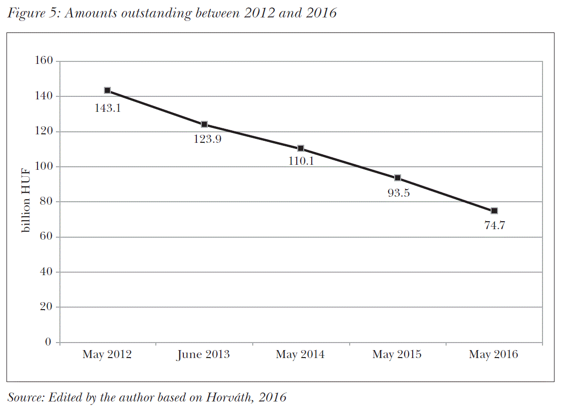 Utility cost cuts also had a beneficial impact on the fate of previously accumulated arrears. Between 2012 and 2016, overdue accounts payable in natural gas, electricity and district heating fell by 48 percent (Figure 5).