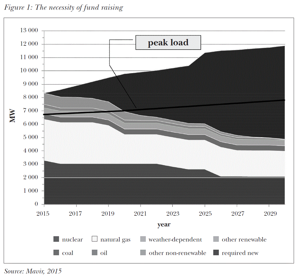 According to the technical analysis of Magyar Villamosenergia-ipari Átviteli Rendszerirányító Zrt. (MAVIR, Hungarian Transmission System Operator Private Limited Company), the required installed capacity of the Hungarian electricity system may be 13,551 MW until 2030. Of this capacity, large power plants may represent 11,051 MW capacity and small power plants (wind, solar, hydro, etc.) 2500 MW capacity in the future (Mavir, 2015).