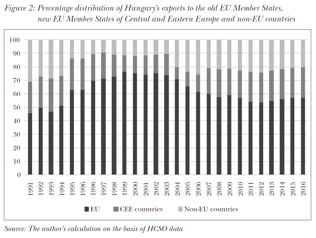 An evaluation of the Hungarian economy’s integration is both easy and difficult. Easy, because according to a significant part of the literature on integration, the nature of foreign trade relations between a given country and the countries that comprise the economic integration or for a presumed internal market of the integrated unit is pivotal (Palánkai et al., 2011). However, evaluation is also difficult because complex indicators have been elaborated for measuring economic integration, and they may show different trends in integration, as indicators may in many cases show a shift not because of professional, but normative and ideological reasons.