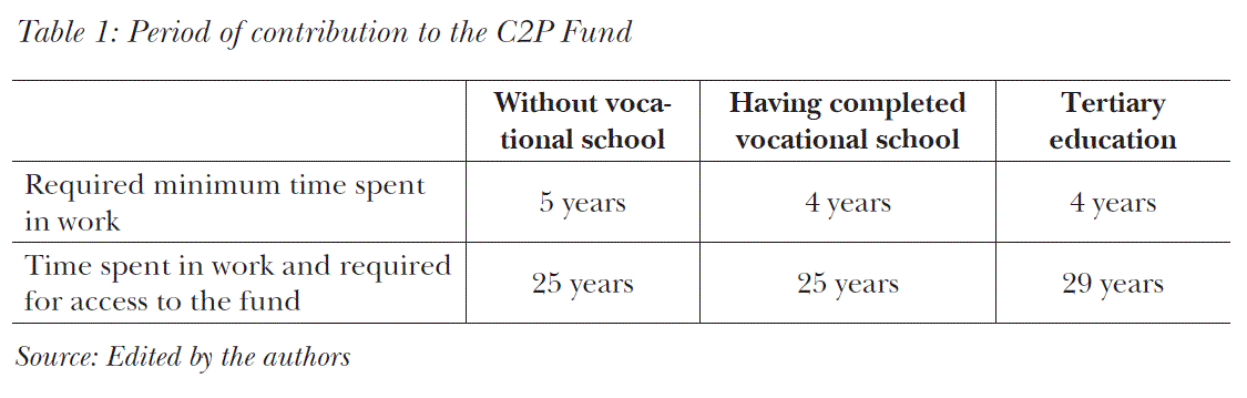 Working-age children are expected to work for minimum 4 (or 5) years to authorise their parents to access the pension element. Allocation to the fund would begin after leaving education, immediately when children are first employed.