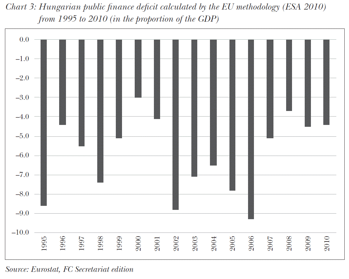 In Hungary, following the regime change, the fiscal policies of the subsequent governments were characterised by bargaining mechanisms, planning and financial management built on political promises and dogmas. This presented an obstacle for public finance stability as well as for sustainable development (Antal, 2004; Karsai, 2006; Lentner, 2008; Matolcsy, 2008; Muraközy, 2010).