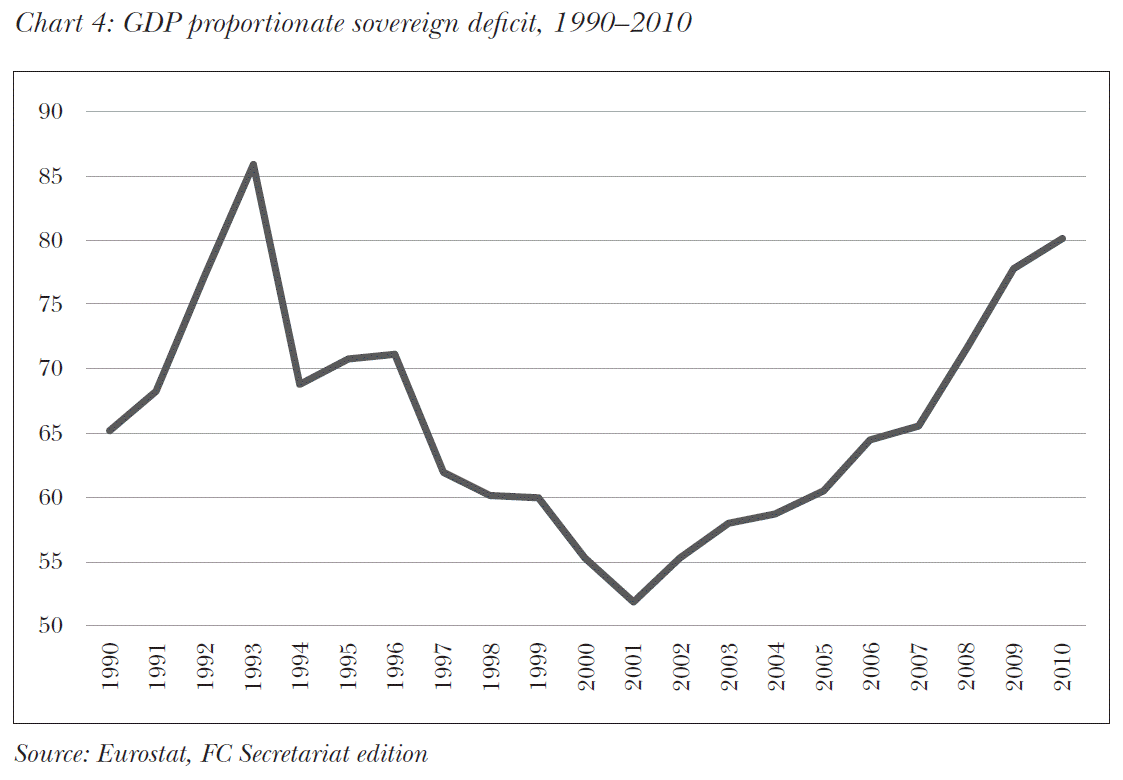 Year after year the Council was paying attention not only to the exact planning of revenues, expenditures, deficit and sovereign debt but also made sure that aspects of efficiency were enforced on both the revenue and expenditure sides of public finance. The FC did this parallel with repeatedly emphasising that the competitiveness turn was unavoidable in the economy.