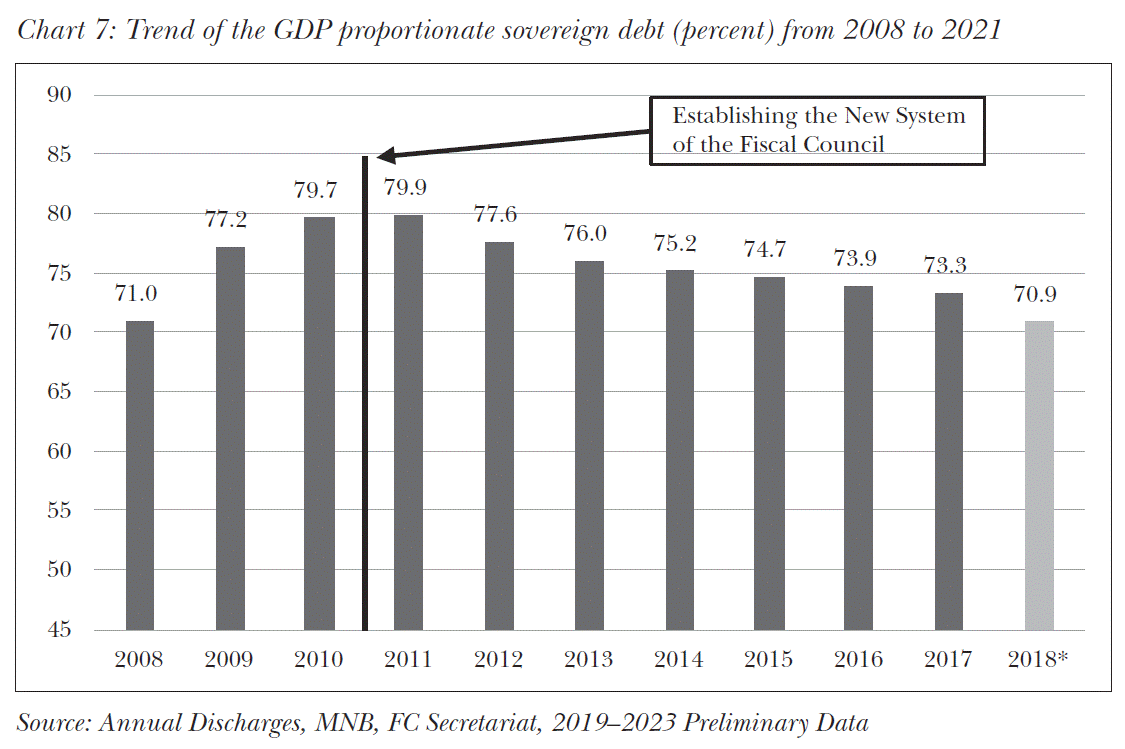 - Furthermore, in connection with the draft budget bills of years 2018, 2019 and 2020, it emphasised that the planned decrease of the GDP proportionate sovereign debt was meeting not only the domestic requirements but was also in harmony with the EU stipulations.28