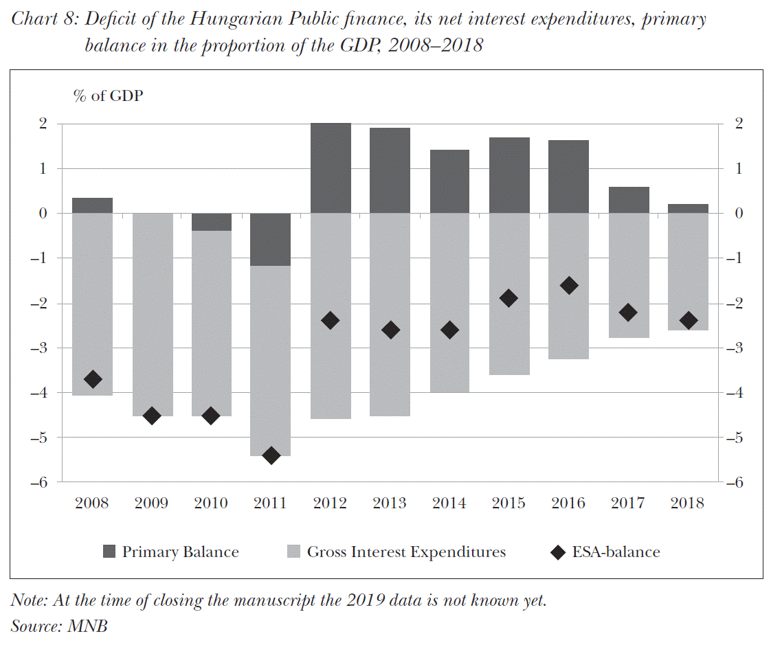 The improvement of public finance balance is acting as a stimulus as regards growth both in our country and our neighbours. The success of our rule-based budgeting policy is reflected not only in the decreasing public finance debt but also in the fact that ever since 2012 our primary balance has been continuously positive in contrast to the previous years when we succeeded reaching such a favourable result only in certain years (Chart 8).