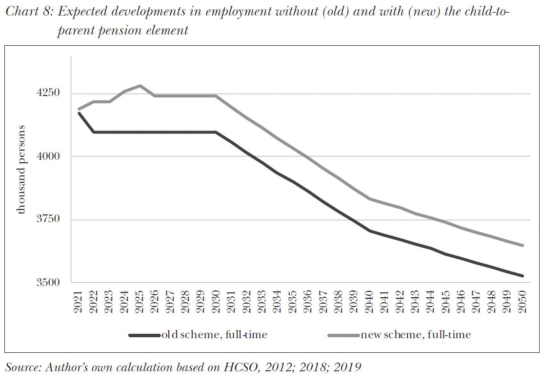 With the termination of the false message sent by the current pension scheme and with the establishment of relay system in the proposed scheme would gradually change the trajectories of families and of public finances: it will be worth both for families and for the central budget to have two children in every family. In such a budget, children are not seen as burdens but as investment; children are not considered as consumption limiting investment, but as an important factor of future economic growth. As a result of these incentives, the potential headwinds of parenting will become a tailwind in the pension scheme: in respect of both the number of children actually allowed to born and children’s employment and especially employment in Hungary.